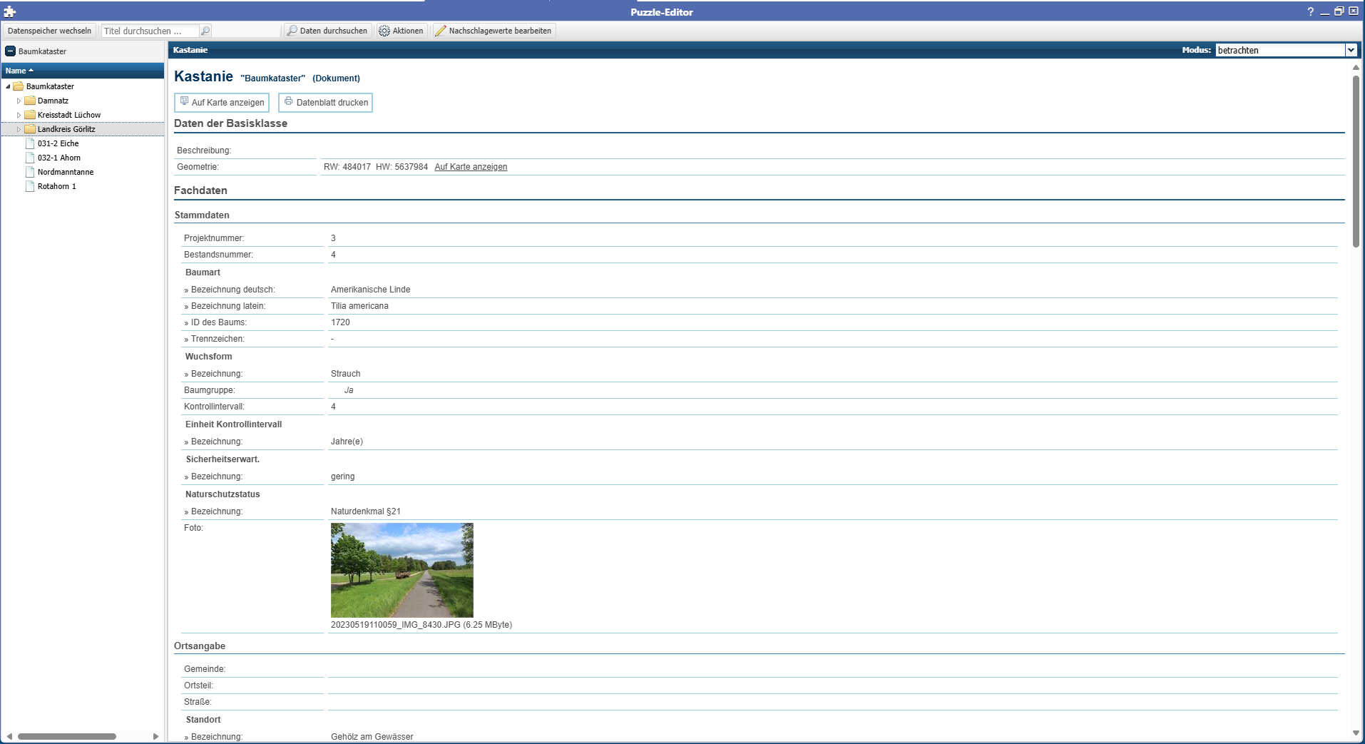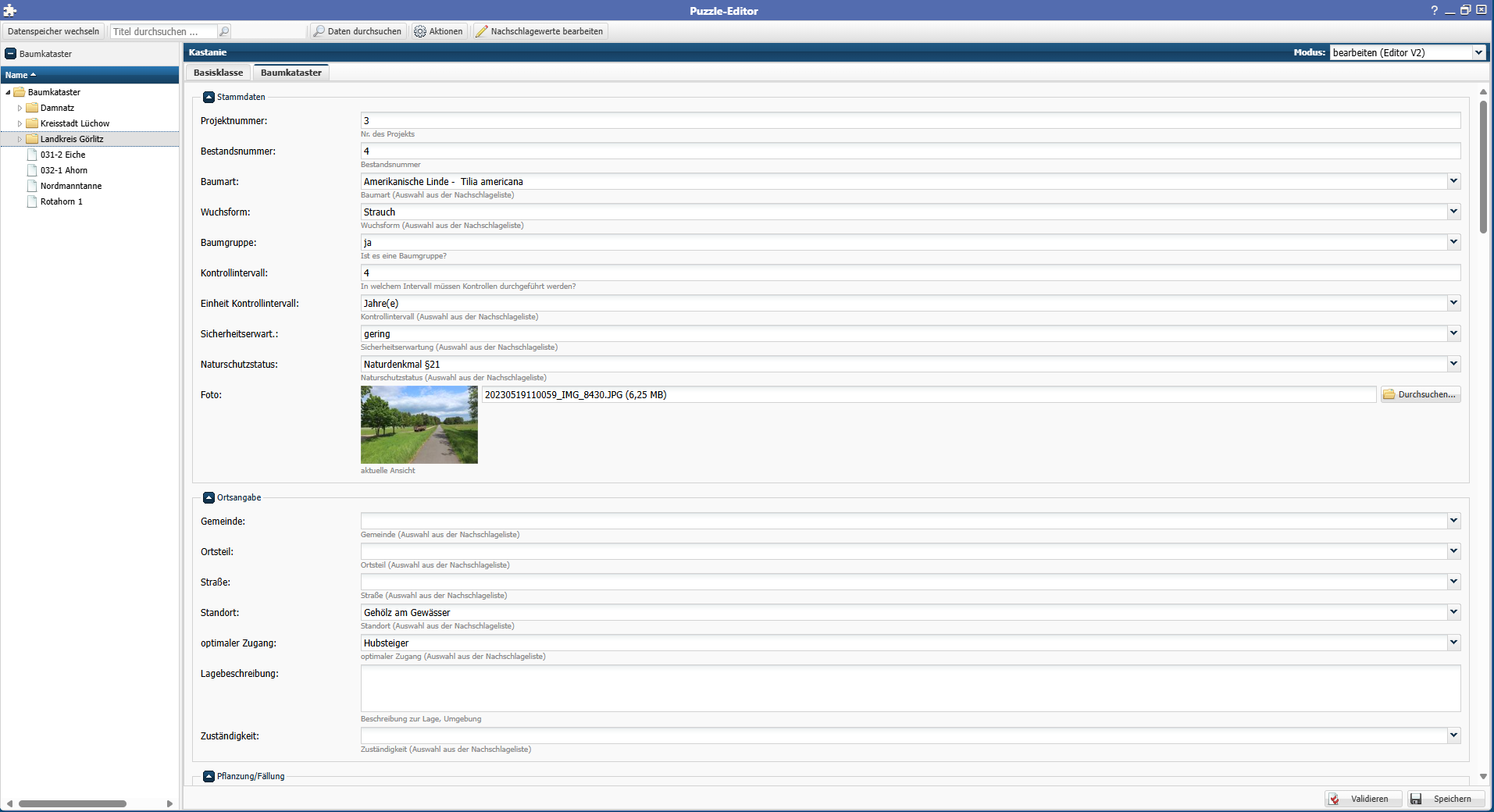 • Erfassung der Daten eines Katasters über die Puzzle Editoroberfläche am Desktoparbeitsplatz