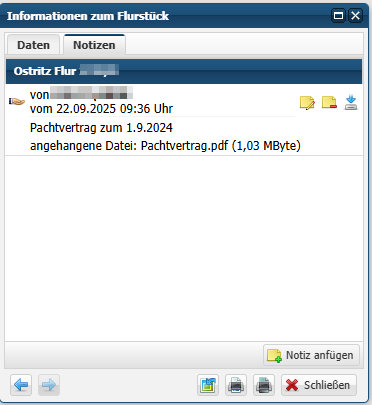 Eine Besonderheit stellen öffentliche Notizen dar, zu denen das Flurstück nicht mehr existiert. Diese sind tatsächlich für alle Nutzer in der Liste „Alle Notizen“ einsehbar.