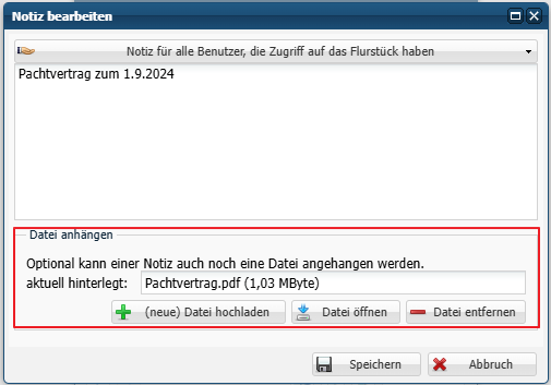 Neben dem reinen Notiztext lässt sich mittlerweile auch eine Datei anhängen – etwa ein Protokoll, ein Vertrag oder ein Foto. Nutzerinnen und Nutzern mit Zugriff auf die jeweilige Notiz können die angehängte Datei auch herunterladen.